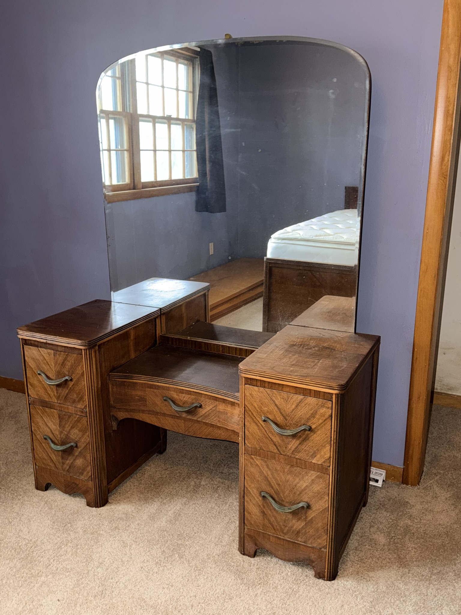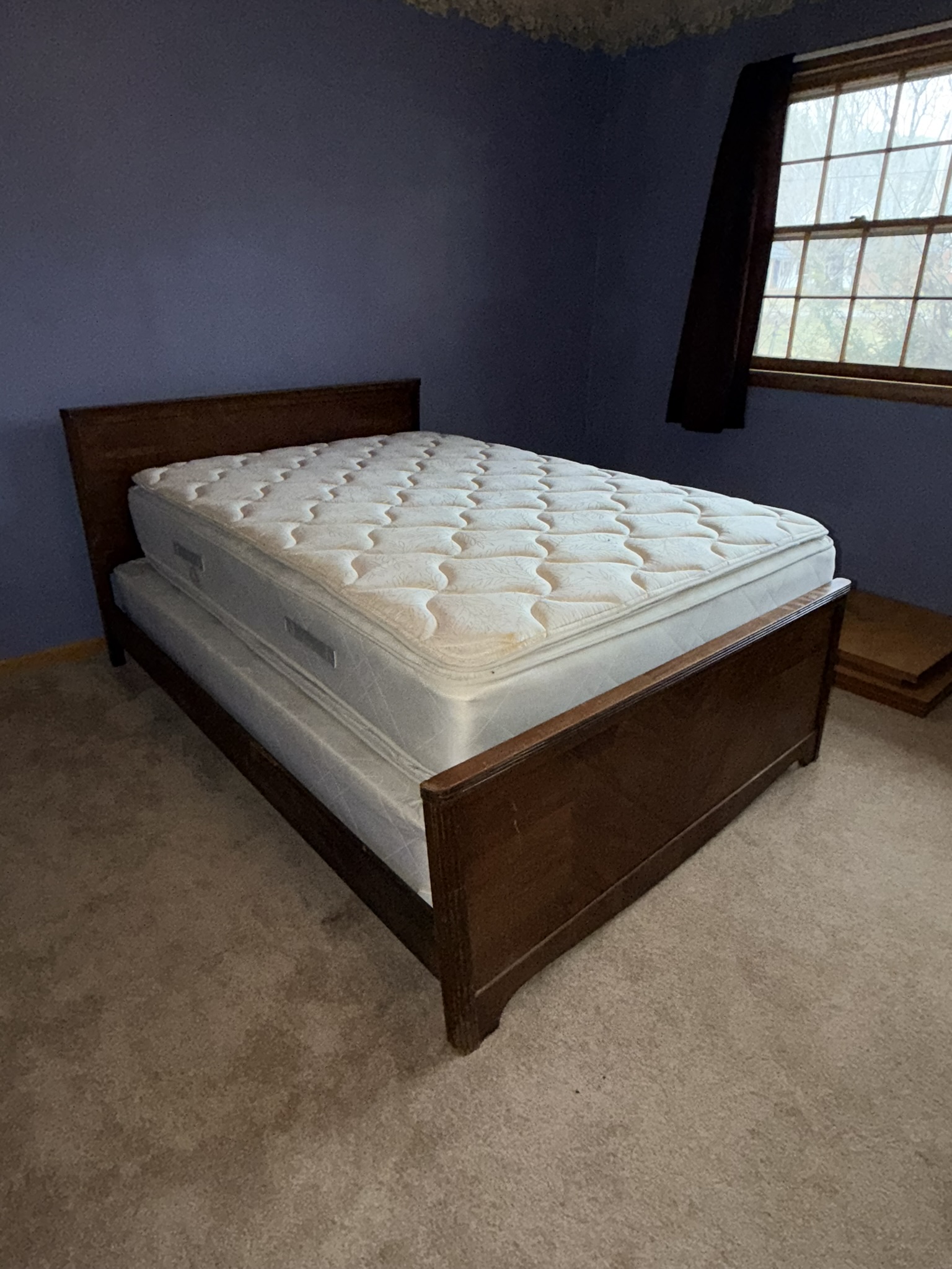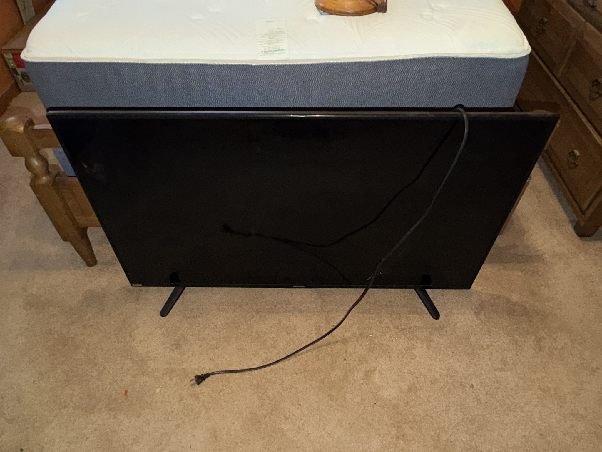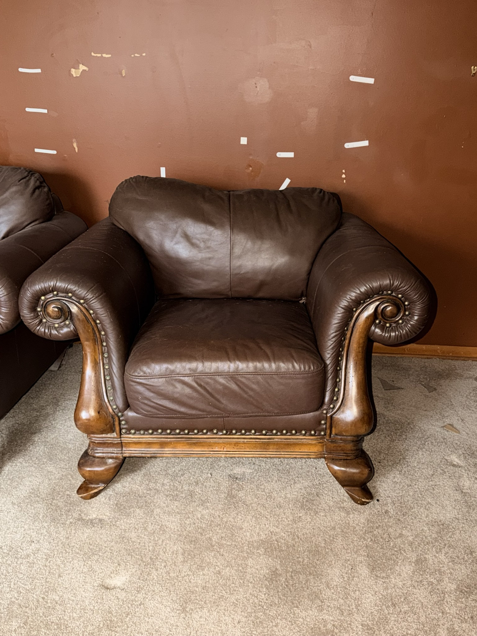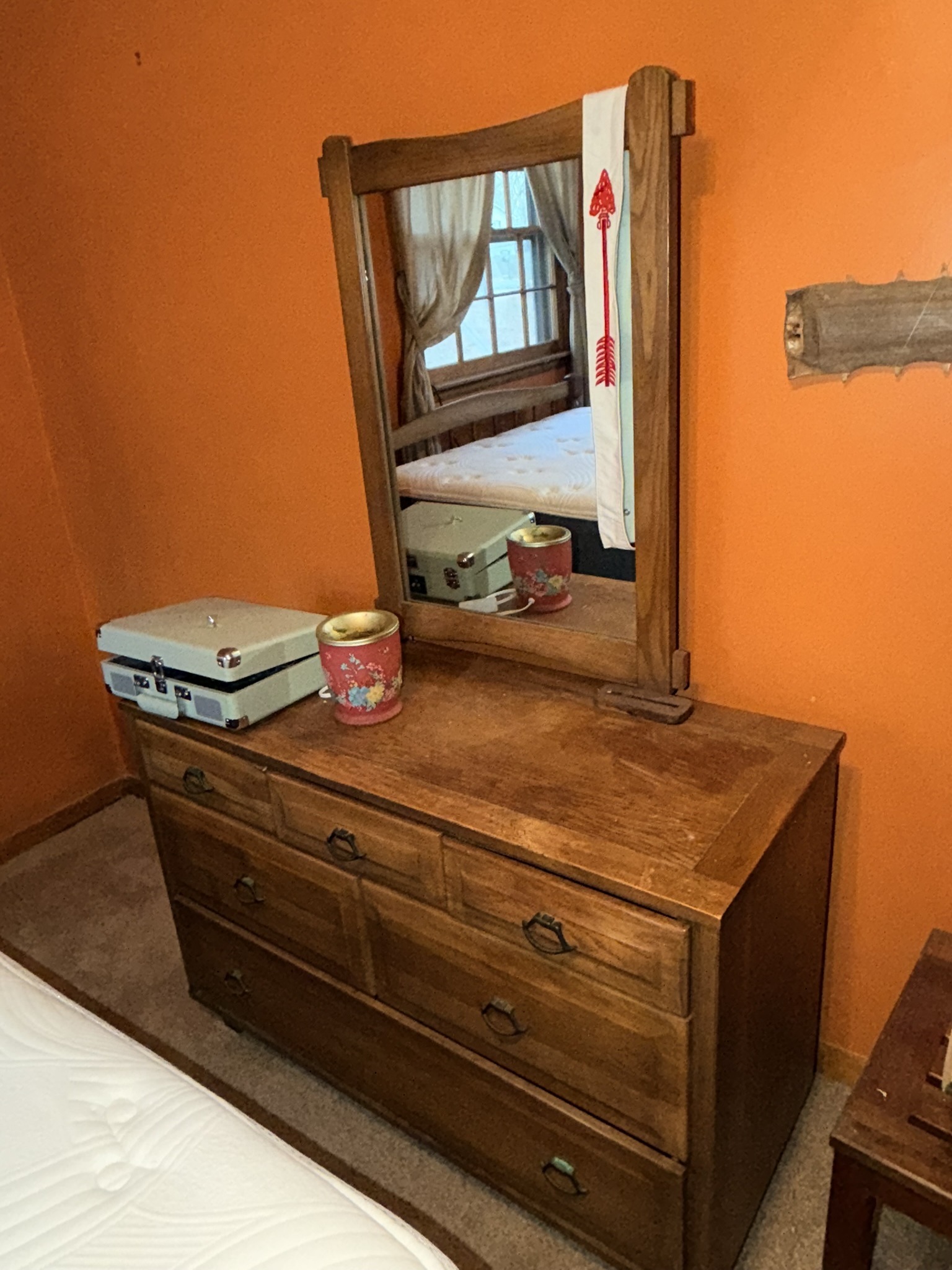 TV stand / entertainment cabinet, leather sofa and recliner, butcher block kitchen table, plastic shelving, dining room table with two chairs, bookshelves, end tables, horseshoe shelf, coat racks, leather sofa and chair, children’s vintage school desk, roll-top desk, Young Republic solid maple China hutch, wagon wheel coffee table, four-drawer filing cabinet, five-piece king bedroom set, antique Union Special sewing machine table, full bed with dresser, full bed with vanity dresser, cedar trunk.