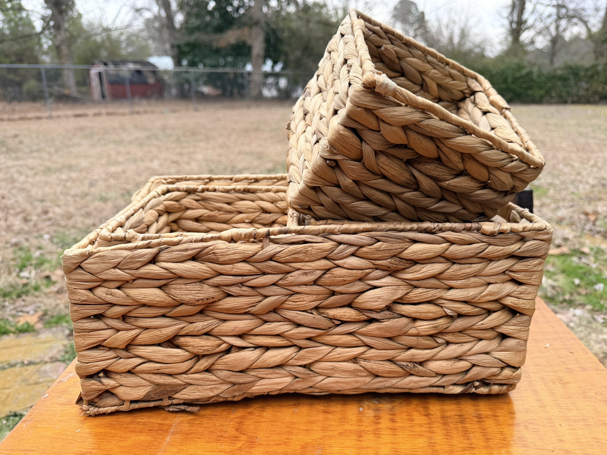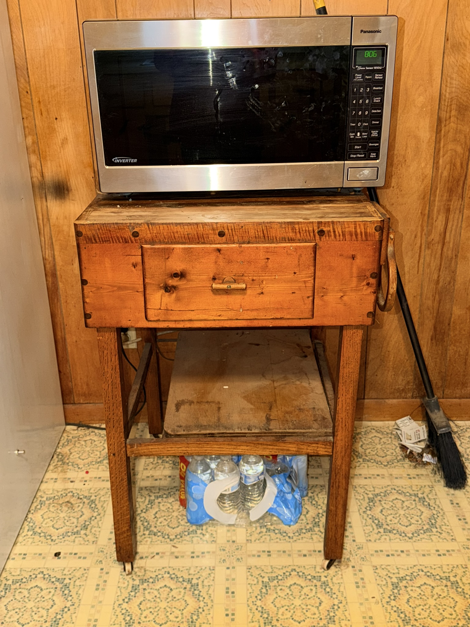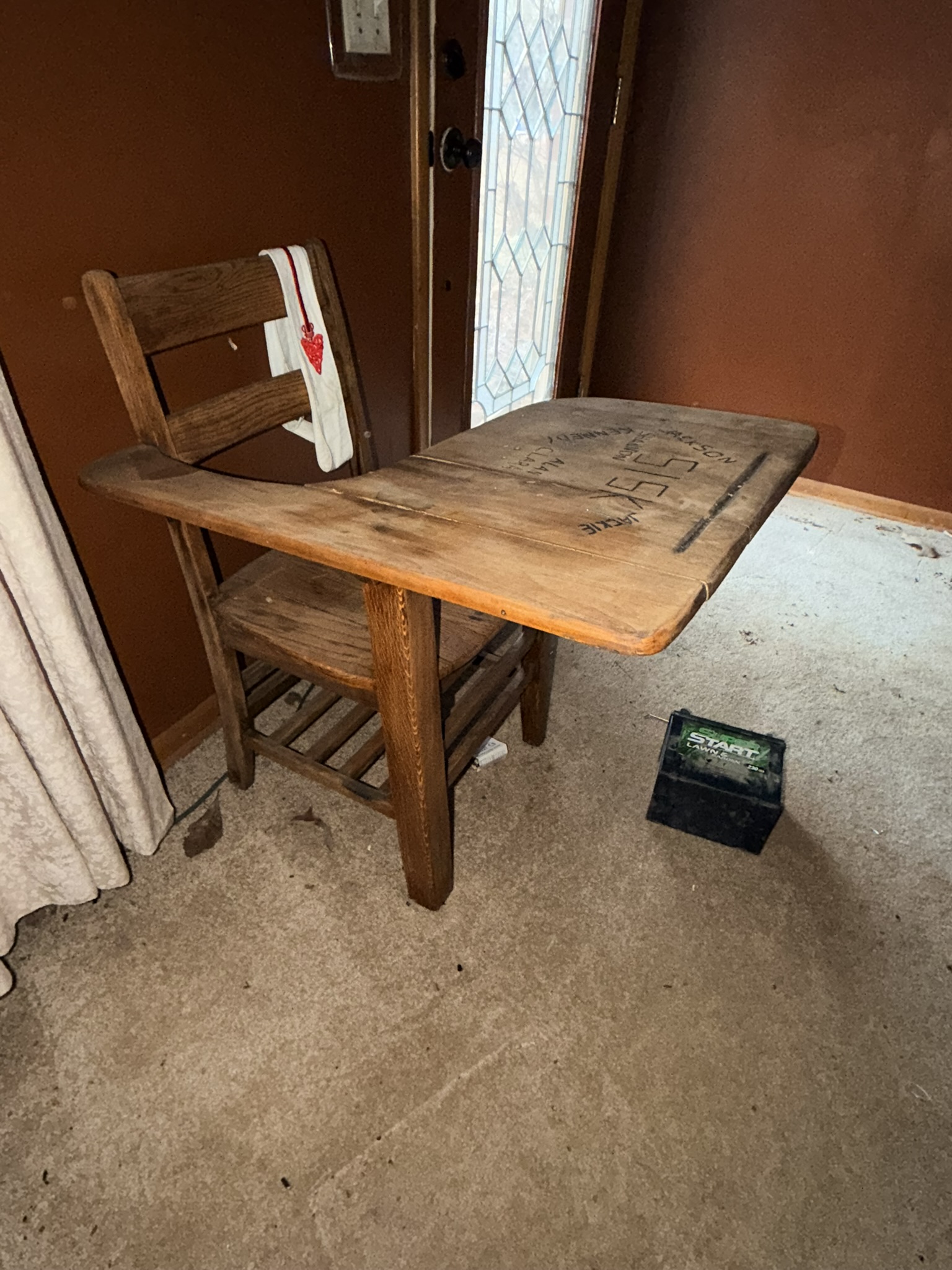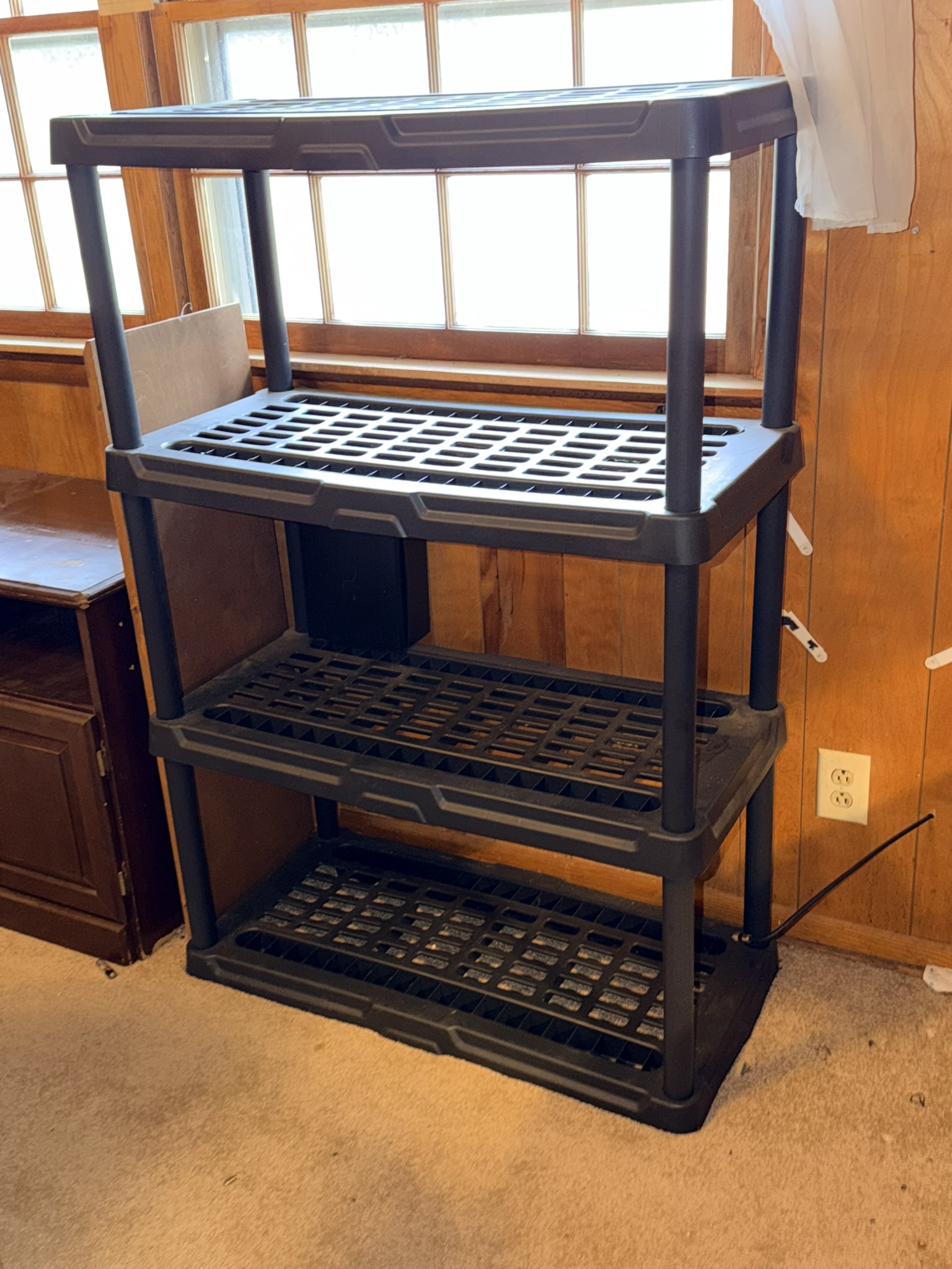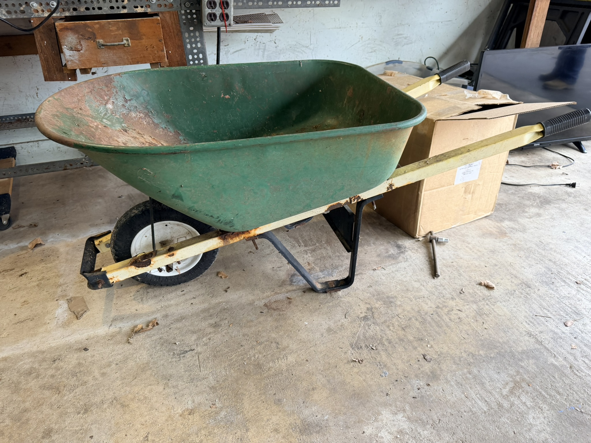 TV stand / entertainment cabinet, leather sofa and recliner, butcher block kitchen table, plastic shelving, dining room table with two chairs, bookshelves, end tables, horseshoe shelf, coat racks, leather sofa and chair, children’s vintage school desk, roll-top desk, Young Republic solid maple China hutch, wagon wheel coffee table, four-drawer filing cabinet, five-piece king bedroom set, antique Union Special sewing machine table, full bed with dresser, full bed with vanity dresser, cedar trunk.