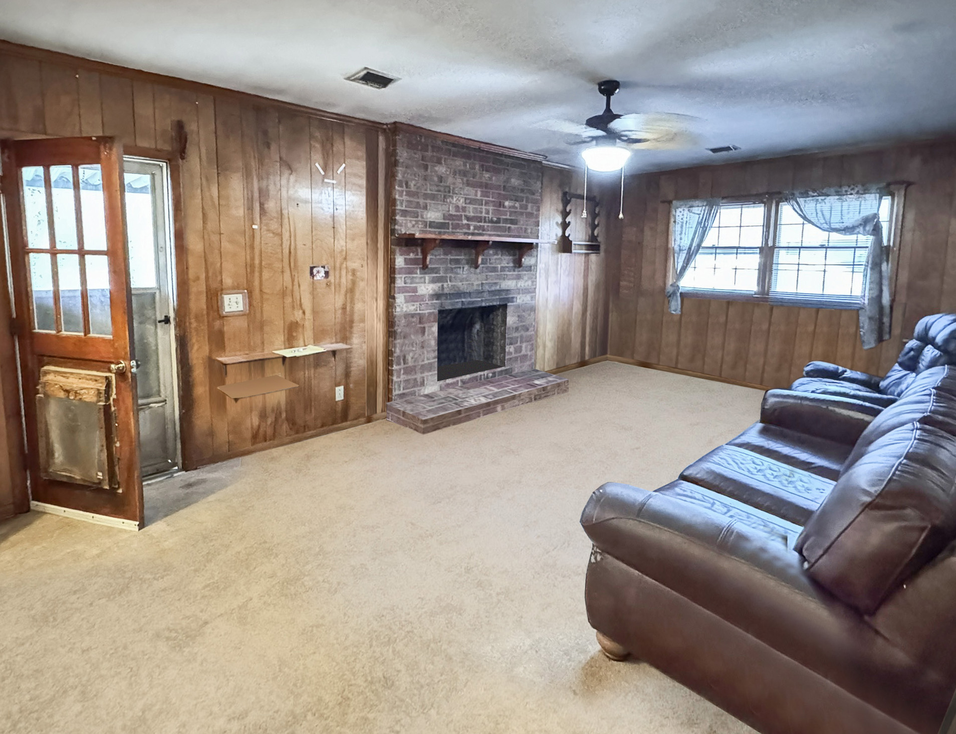 The home includes a covered back patio, a second living area with a fireplace that connects the kitchen and garage, and a functional, well-laid-out floor plan with strong bones. While the property does need updates, it is easily livable as-is and presents clear value-add potential through cosmetic improvements or light renovation. Investors and homeowners alike will appreciate the opportunity to modernize the layout, including the option to open the front living room into the kitchen for a more contemporary design.