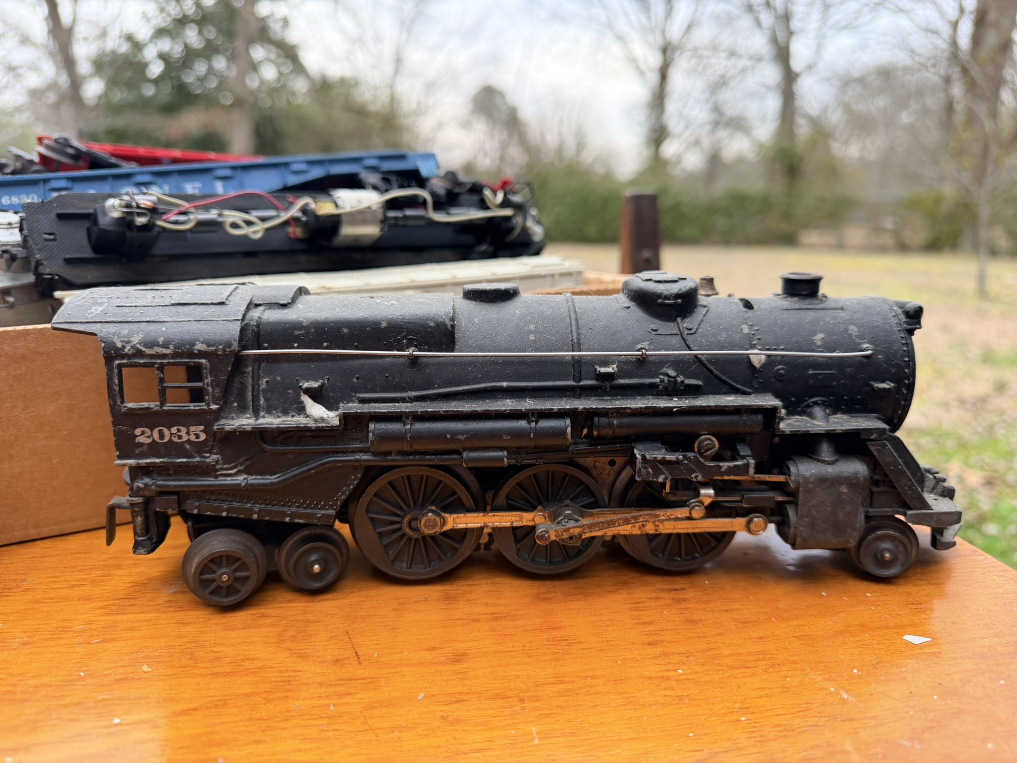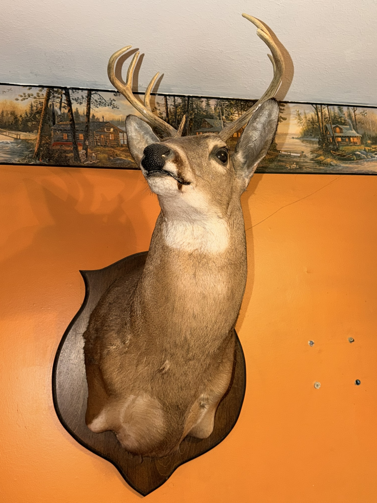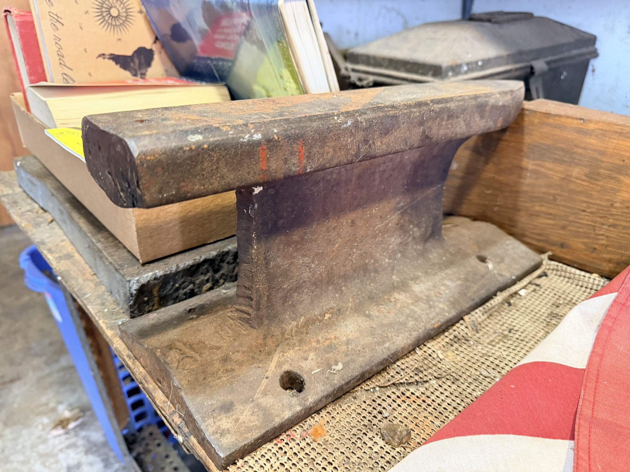 Side-by-side shotgun floor lamp, wooden wall gun shelf, wagon wheel tabletop lamp, kitchen necessities including pots, pans, casserole bakeware, utensils, knives and more, pressed glass serving dishes, vintage rolling pins, company-branded small cast-iron pan, 12” Griswold cast-iron skillet, wine glasses, Royal Jackson dish set, Four Crown China dishes, Keurig with pod container, desk organizer, mounted horns display, 8-point buck wall mount, home décor, brass spittoon, trinket containers, display shells and rocks, framed art, woven storage baskets, horse saddle mirror, Christmas figurines, ornaments and décor, nativity set, vintage Sears & Roebuck slide projector, Lionel train set, Christmas cookie jars, assortment of books, men’s watches, wheelchair, Bissell carpet cleaners, plastic drawer storage, oil lamps, Oster toaster oven, toaster, wok pan, horse saddle décor including singletrees and saddles, The A-Team vintage lunch box, binoculars.