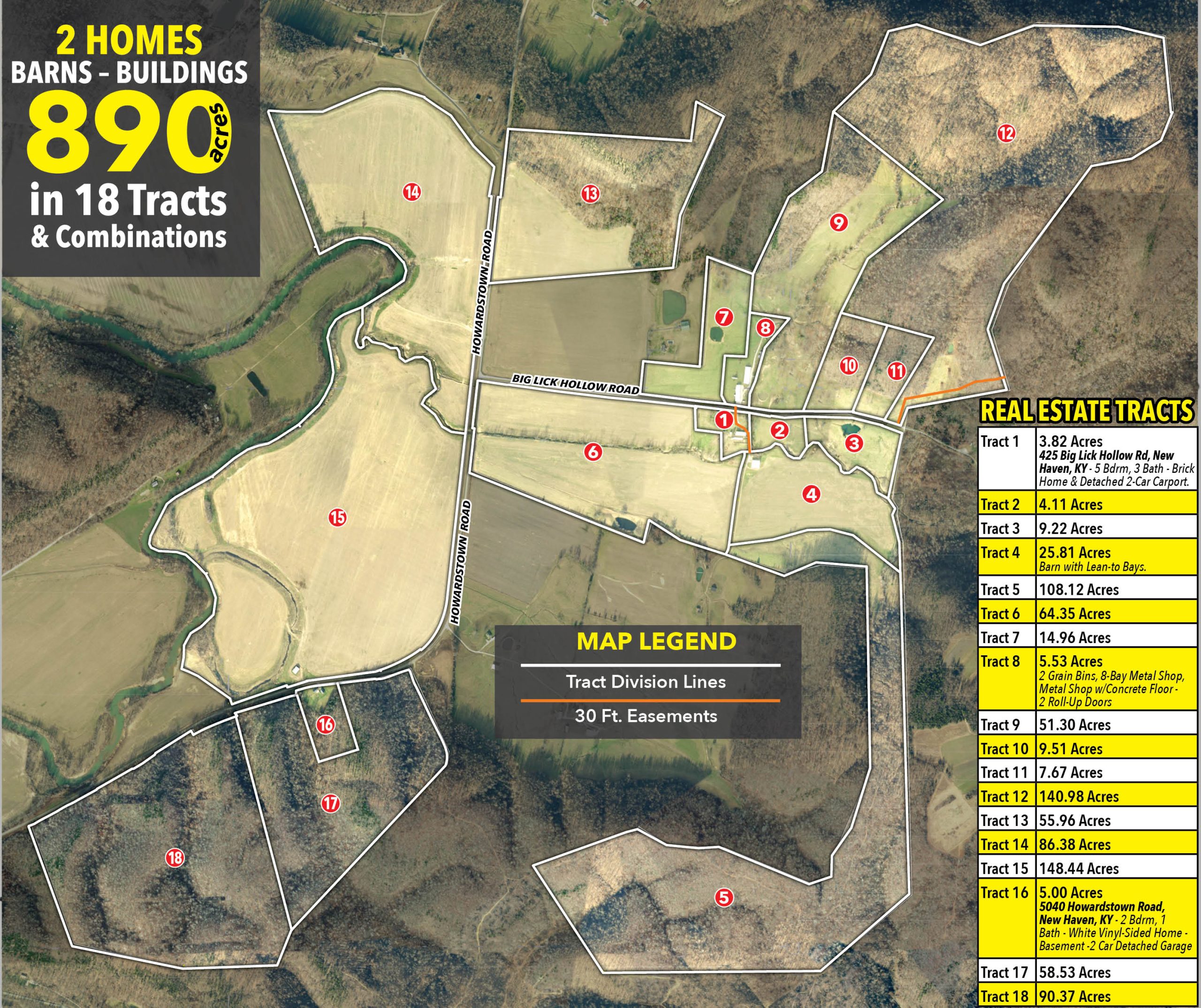 890 Acres Offered in 18 Tracts & Combinations