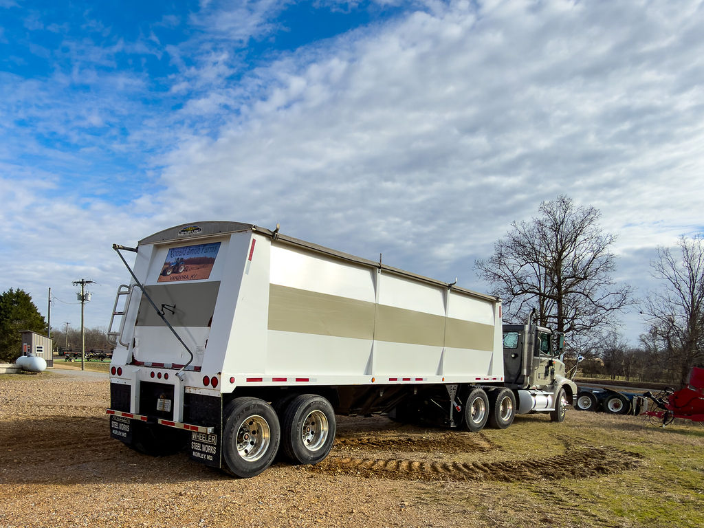 Shur-Lok tarp, air-operated clam doors, aluminum wheels, like-new General 11R22.5 tires.