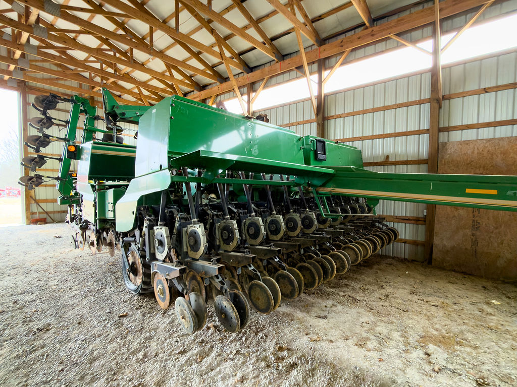 Configured for 30-ft width with 7Β½-inch spacing; includes wheat and soybean plates.