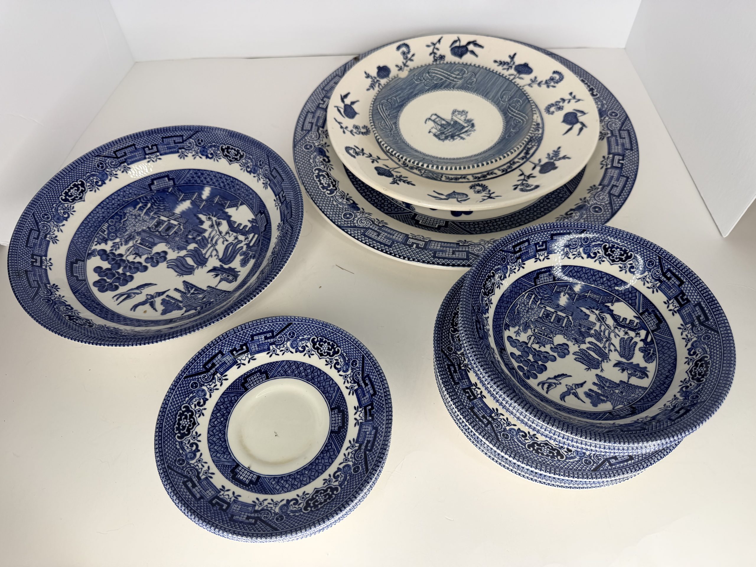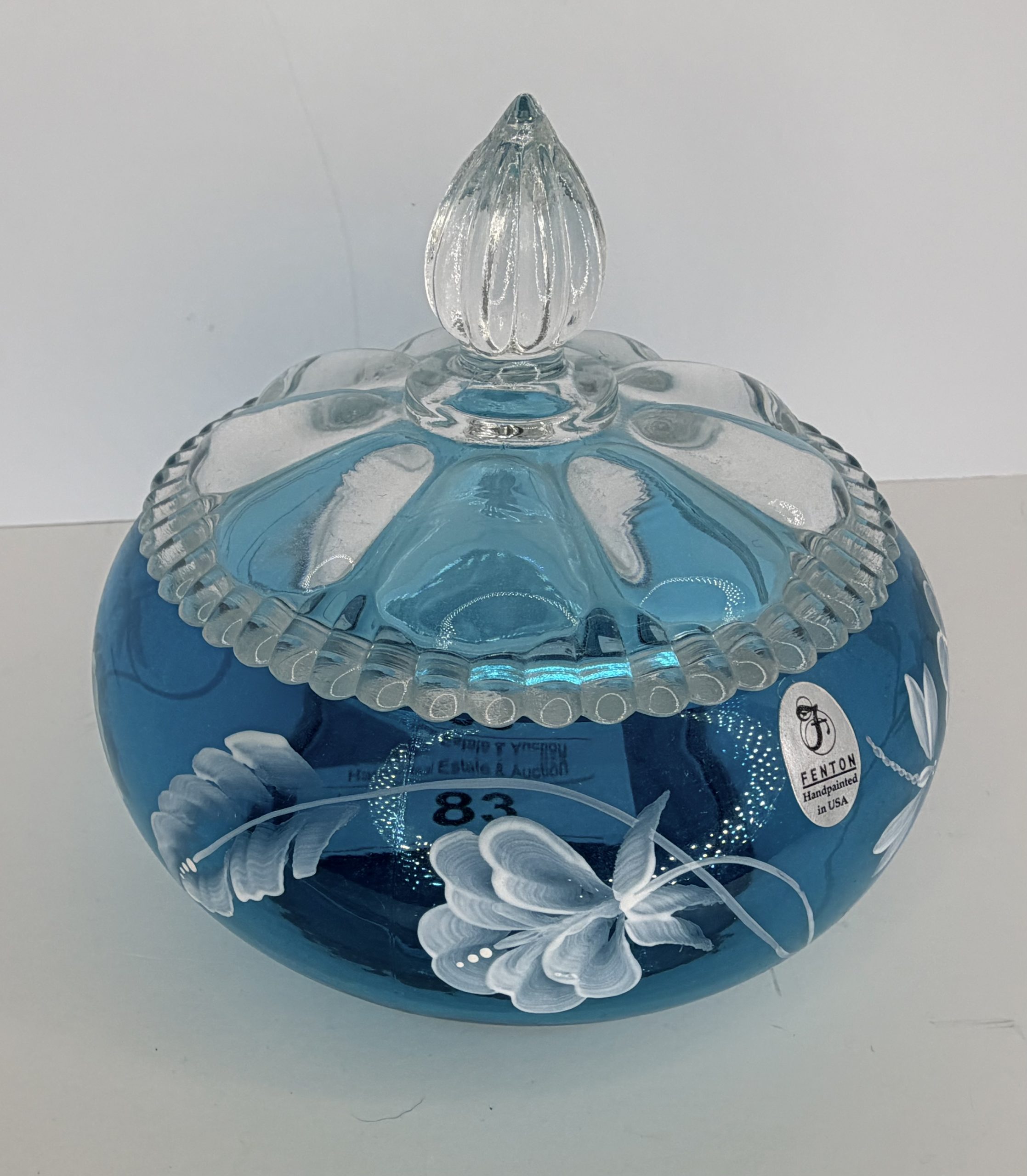 This auction features an extensive assortment of glassware and collectibles, including Churchill England blue and white plates and teacups, Spode Blue Room plates, Fenton hand-painted pieces, Capodimonte porcelain, Wedgwood containers, crystal trinket boxes, blown glass décor, UV-reactive glass, lamps, snow globes, holiday ornaments, and decorative glass and ceramic accents.