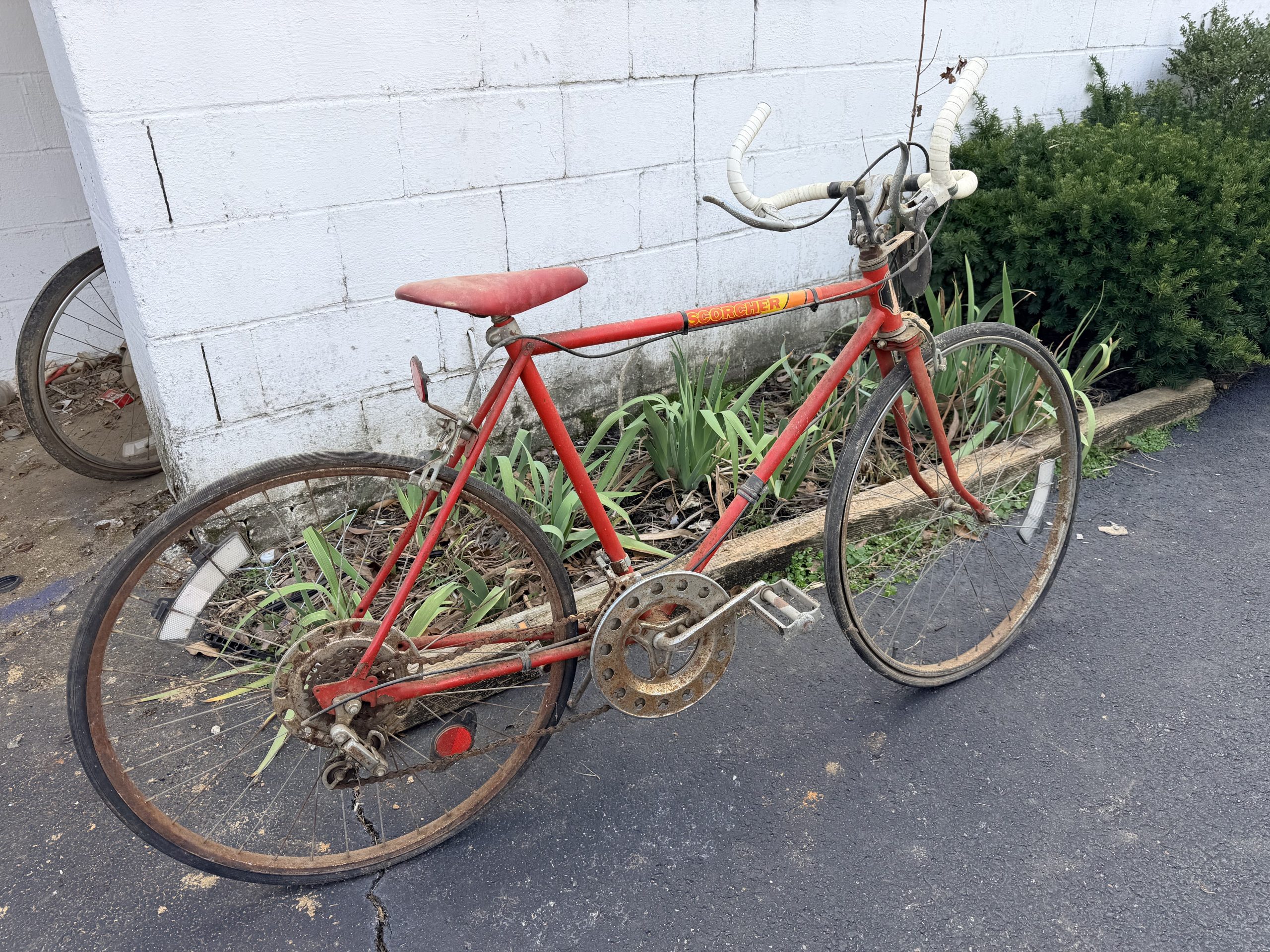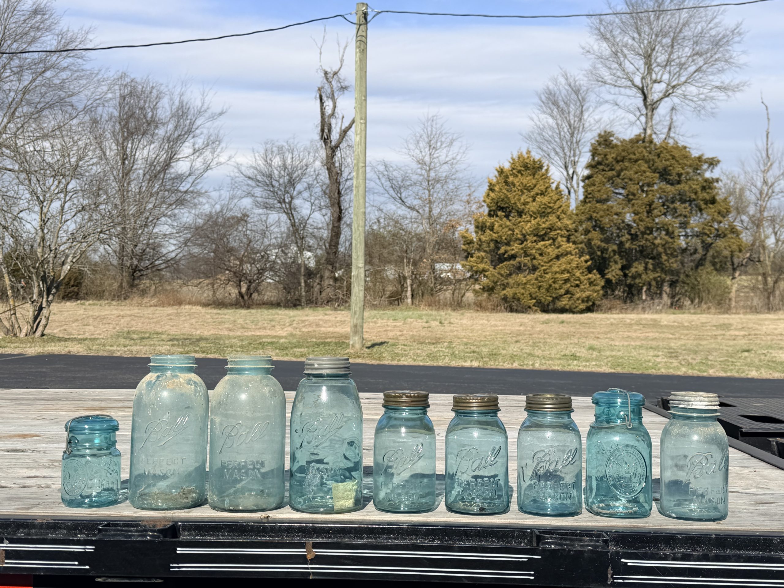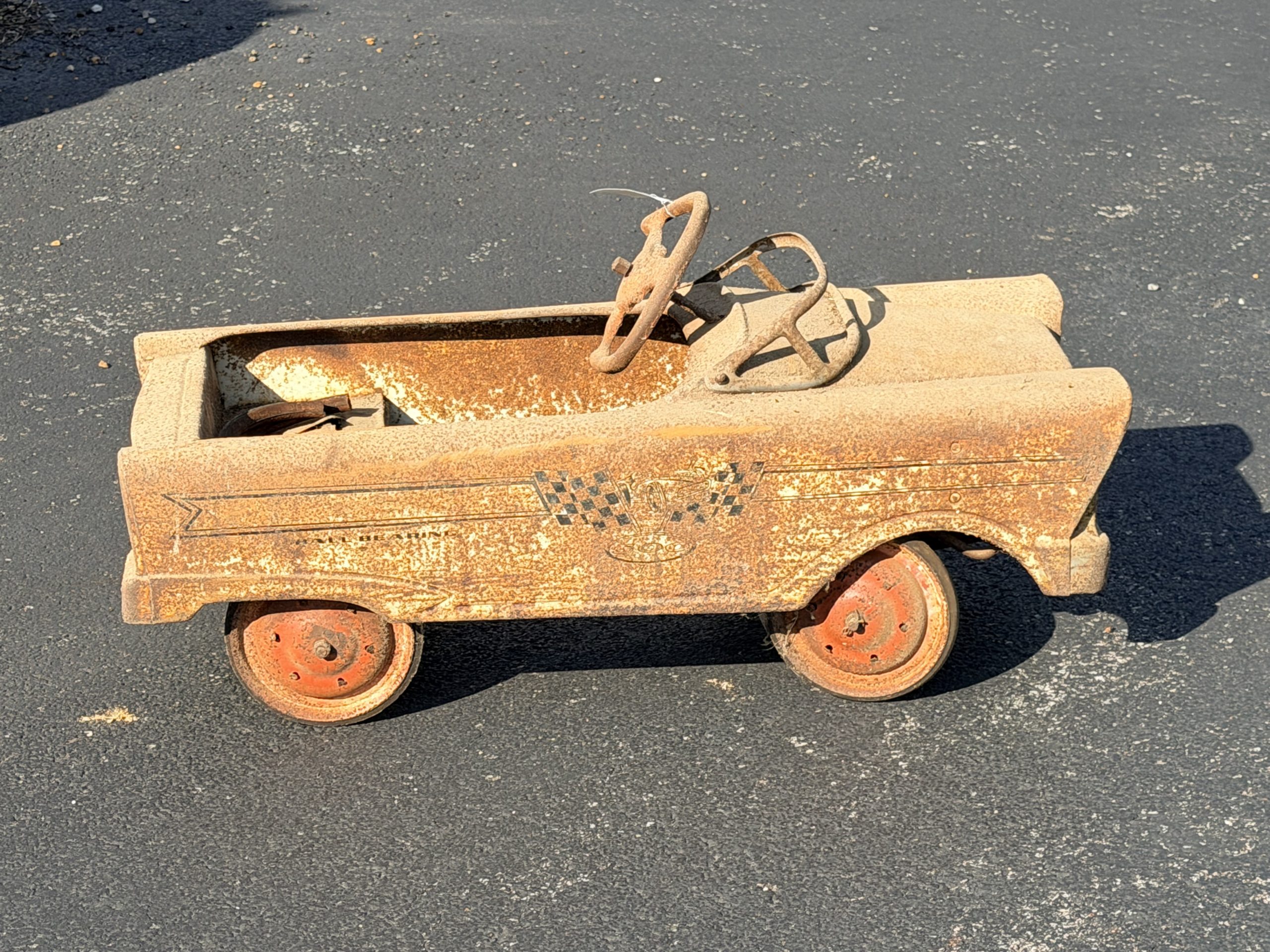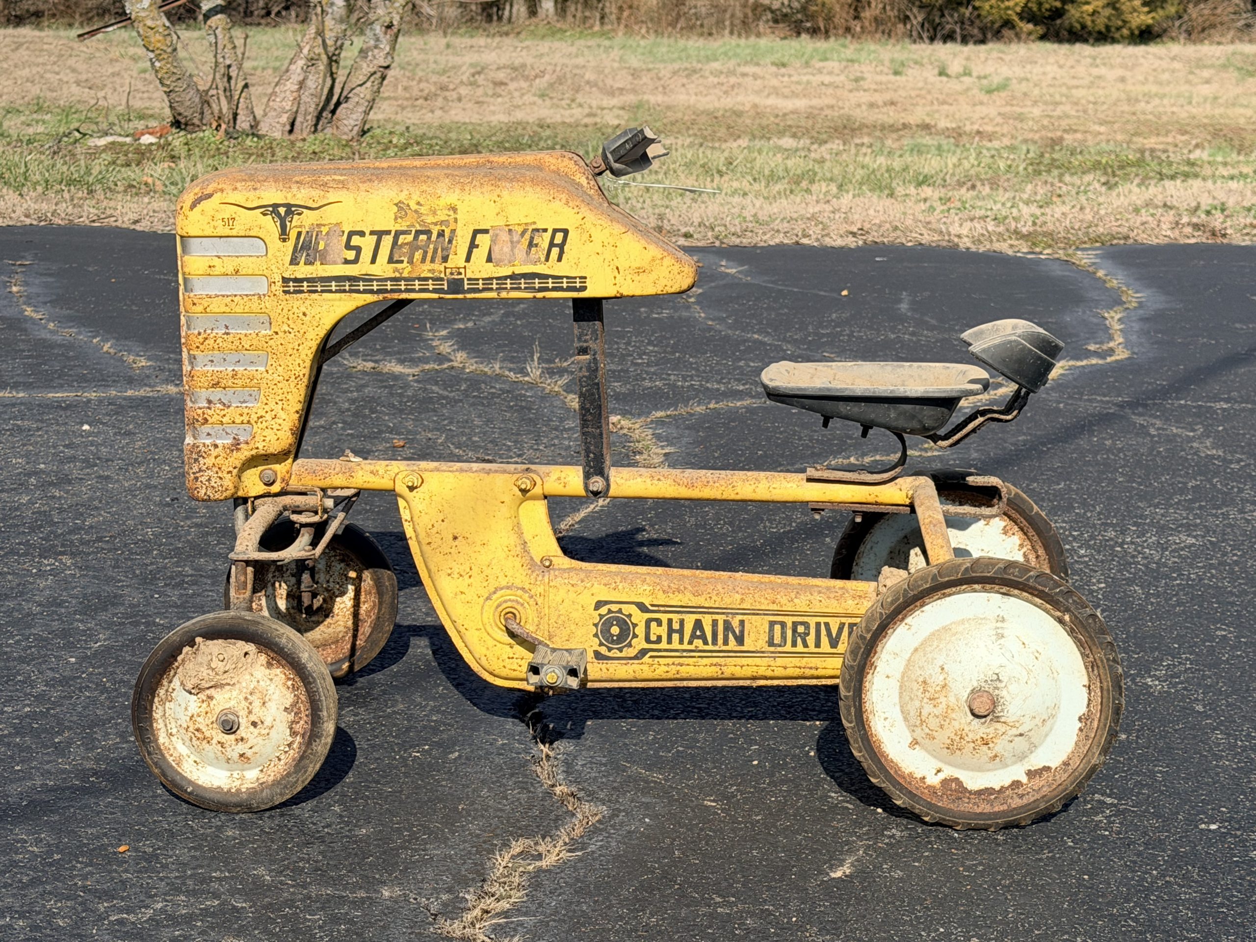 Two Cast Iron Kettles, Cast Iron Kettle, Vintage Red Painted Wooden Rocking Horse, Antique Corn Sheller, Antique Children’s Tricycle, Western Flyer Pedal Car, Child Antique Pedal Car, Blue Mason Jars, Cast Iron Kettle Tray, Antique Or Vintage High Chair, Enamelware Black And White Pitcher And Basin, Vintage Metal Milk Can, Vintage Cooking Tools / Meat Grinders, Blue Dietz Lantern, Sunnyland Antique Wash Board.
