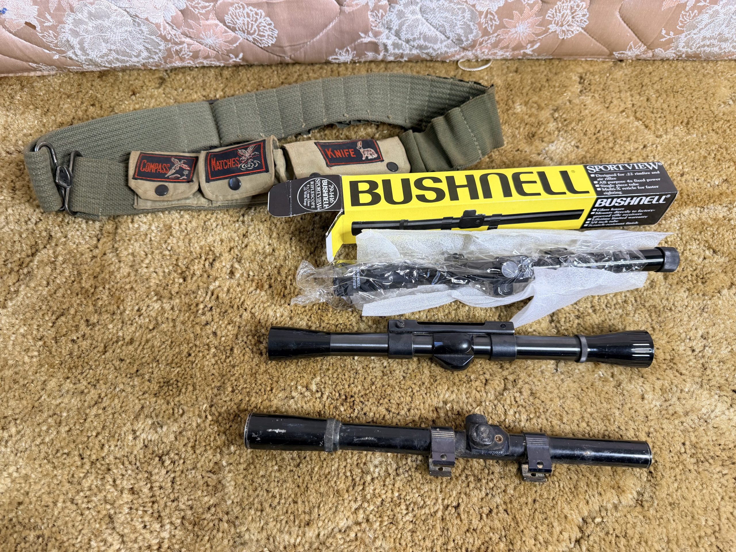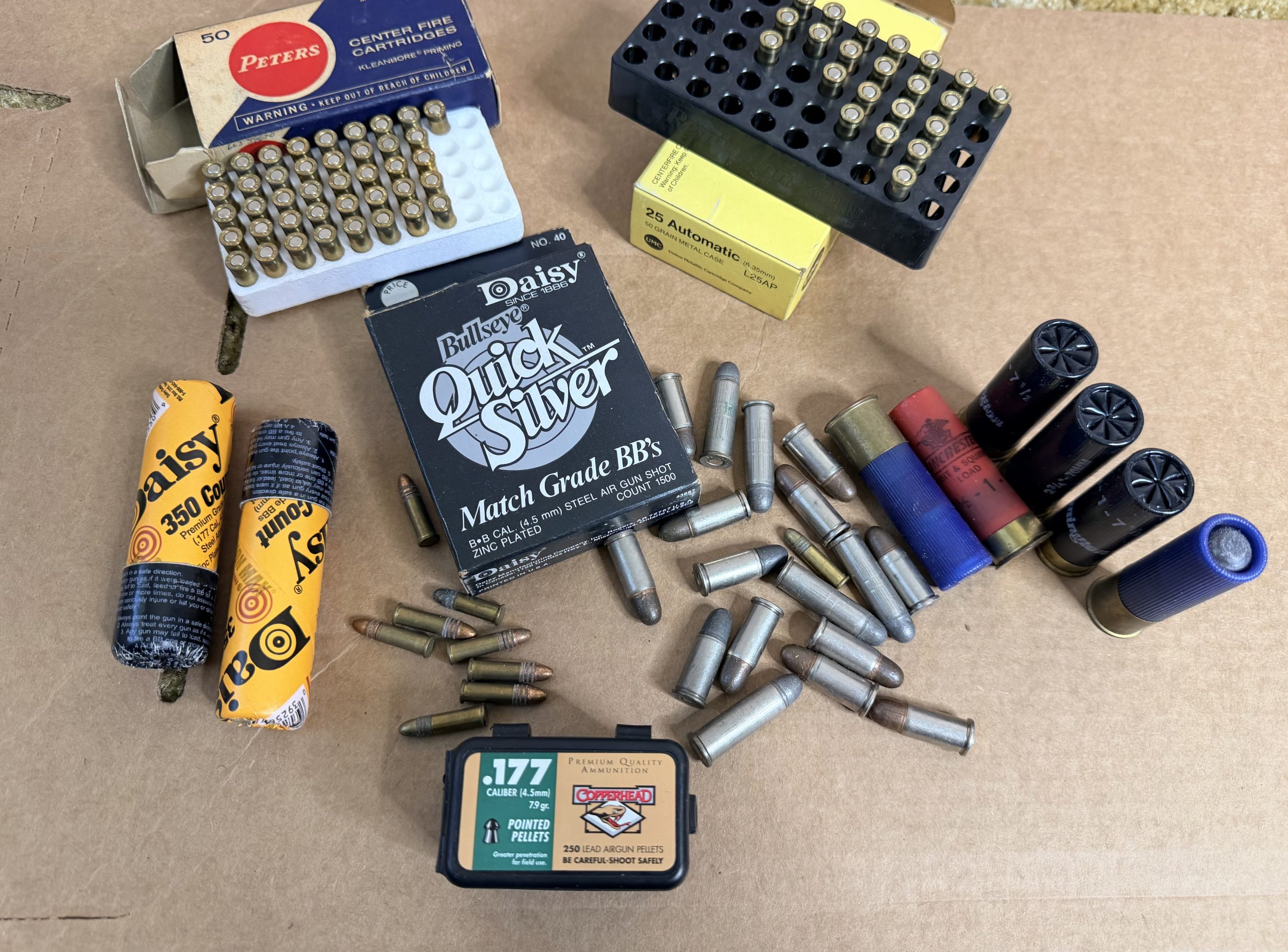 2 – Bb Guns With No Markings, 66 PowerMaster .177 Cal Bb & Daisy, Assortment Of Scopes, Assortment Of Ammunition ( .177, BBs), Rohm Sontheim/Brenz Cal .22 Lr Revolver, Iver Johnsons Arms Revolver.