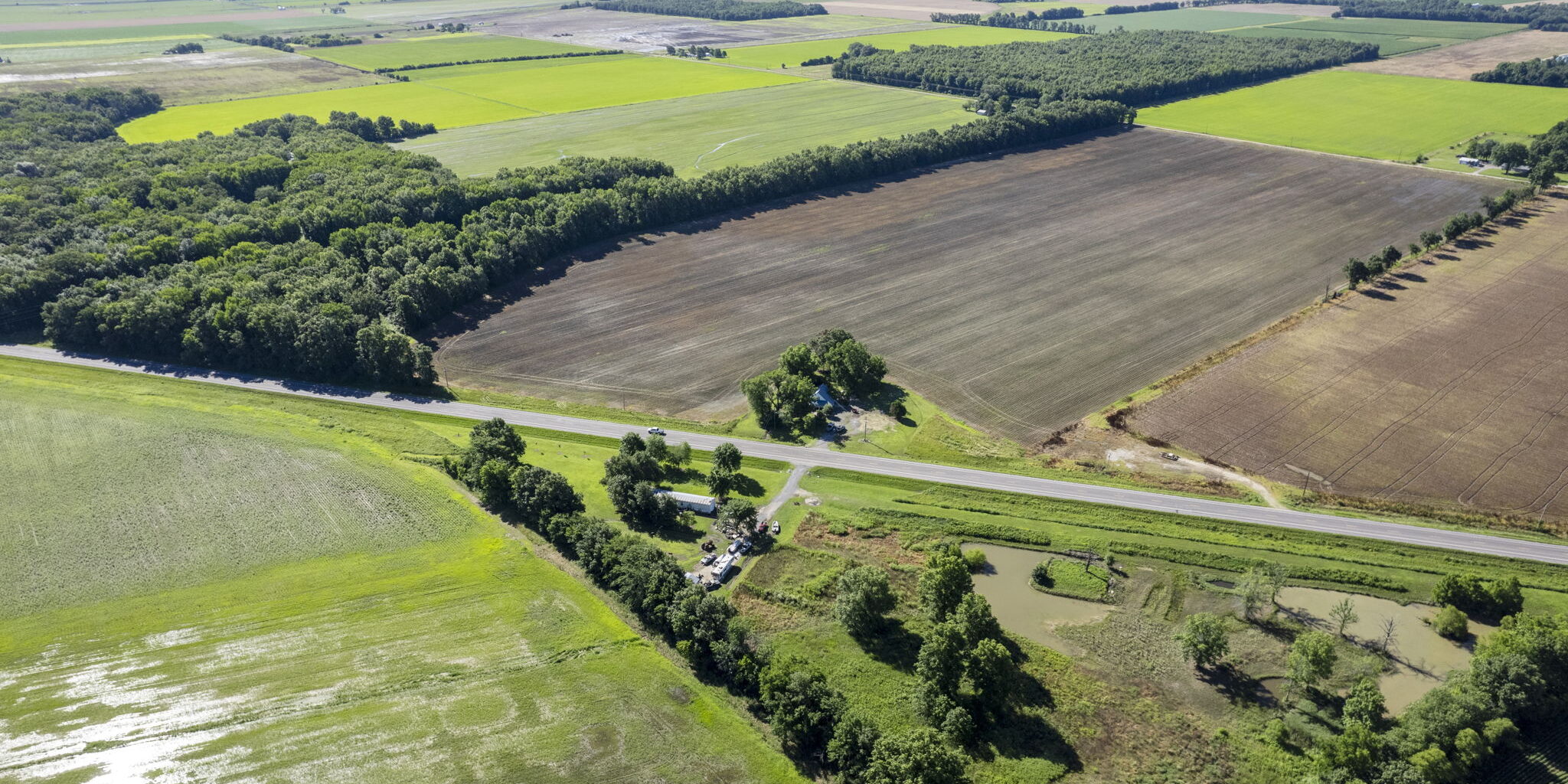 Tract #2 – Consists of approximately 77 acres. 60 acres of which are tillable and the remaining acreage in a timbered section running along the east property border. The cropland has been put to grade with an electric well. Water control is located on the south end and is made possible through the use of a Weir box. Currently the field is bedded and has good drainage. This highly productive farmland is suitable for rice, beans, or corn.