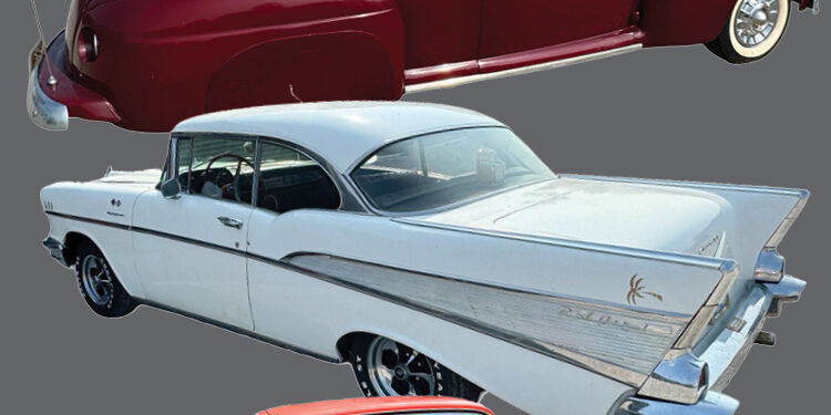 - 1957 Chevy Bel Air – VIN: VC57N148979 – Color: Orange – Odometer Reads: 94048 – This vehicle has a V8 engine, originally white and painted orange, auto transmission, and 2DR hard top. This vehicle was made in Norwood, Ohio. Engine will turn over, floors and trunk appear solid after evaluating car’s condition. Vehicle has a title.