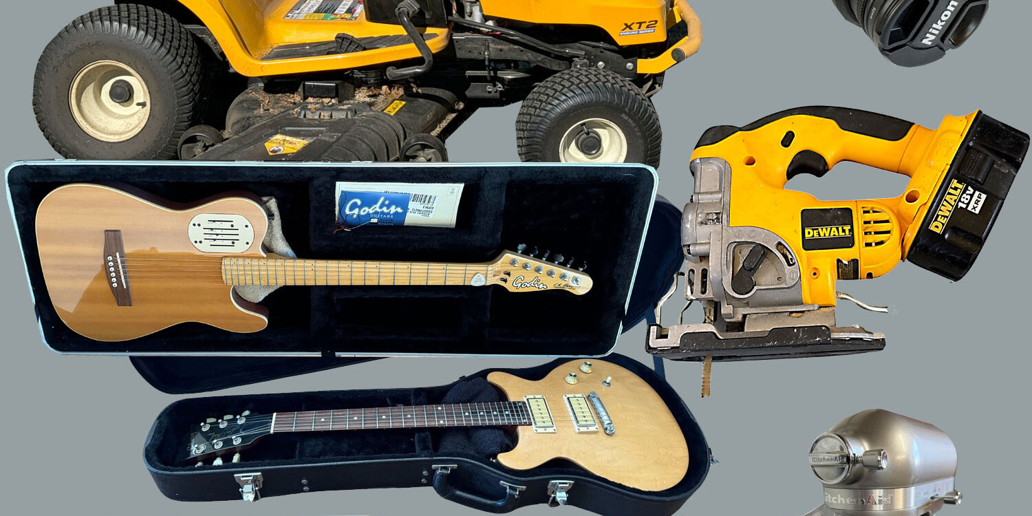 MOWERS, GARDENING TOOLS – TOOLS AND SHOP ITEMS – OUTDOOR ITEMS – HOUSEHOLDS – GUN – GUITARS & MISC