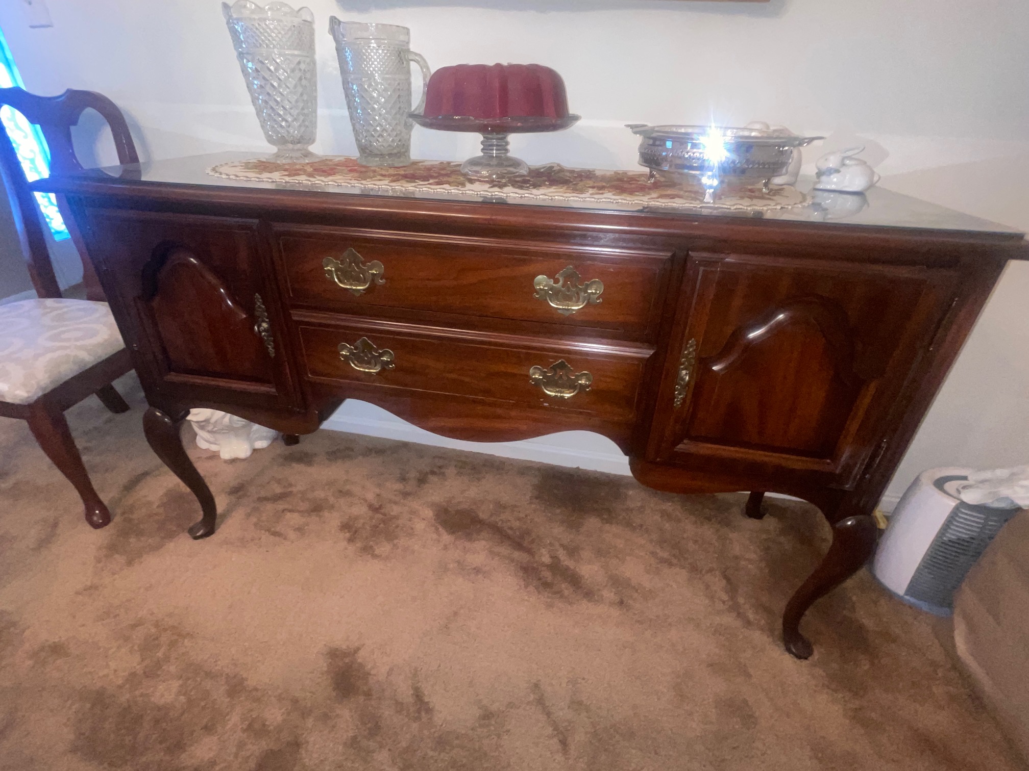 Glassware: Moon & Stars Emerald Compote, Amber Compote, Coffee/Tea Server, Glass Win Server, Serving Dishes, Pressed & Cut-Glass Pieces, 8 Place Setting Of Sango China, Goofus Glass, Corning Ware